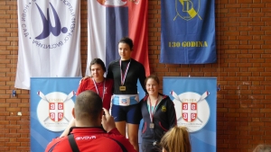 Poslednji vikend meseca februara bio je rezervisan tradicionalno za prvenstvo Srbije na veslačkim ergometrima za koje smo se pripremali proteklih meseci. Nastavili smo tradiciju dobrih nastupa na ovom takmičenju, tako da smo kao i prošle godine i ove osvojili doduše jednu medalju manje (4), ali smo osvojili i jednu titulu prvaka Srbije u ženskoj konkurenciji veslačica juniorki, gde je Maša Stanisavljević pobedila. A pošto je veslala u grupi sa seniorkama B i lakim seniorkama osvojila je drugo mesto iza pobednice Milice Slijepčević, tako da je eventualno nastupila i za seniorke imala bi drugo izveslano vreme i u toj konkurenciji. Maša je svojim nastupom pokazala da je jedna od veslačica na koju će Veslački savez Srbije u narednim mesecima i godinama moći ozbiljno da računa. Pored Maše posle ovog takmičenja ponosni smo uopšteno na ženski deo ekipe našeg kluba, jer su od ukupno osvojene 4 medalje tri osvojene u ženskoj konkurenciji. Titulu vicešampionki osvojile su i Anđa Simić i Anđelija Mladenović u disciplini 2x za pionirke osvojivši drugo mesto i srebrnu medalju, i one su se borile do samog kraja i trka je bila neizvesna, poslednji metri su odlučivali pobednika.